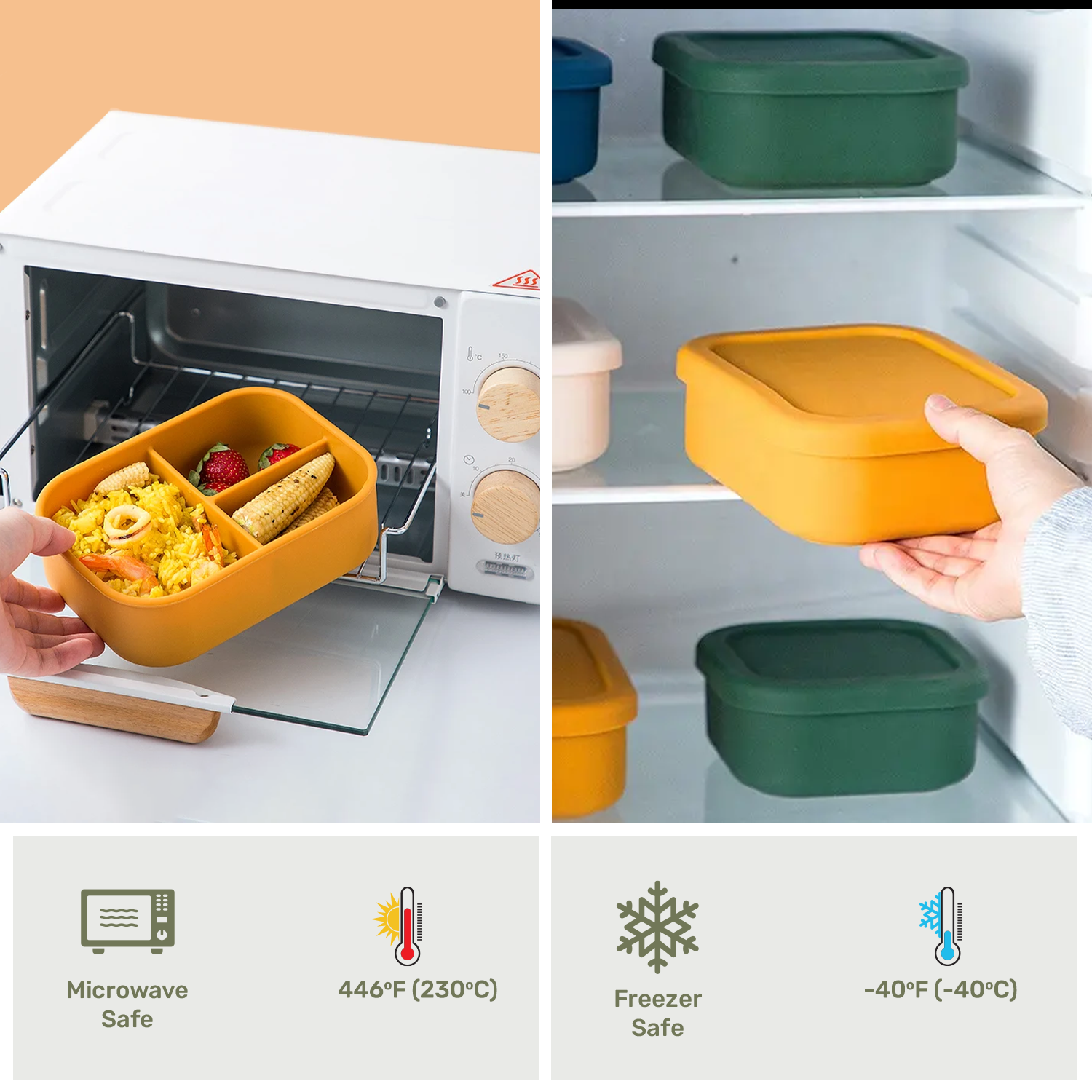 Freezer, microwave, and dishwasher-safe designs make storing and reheating hassle-free.