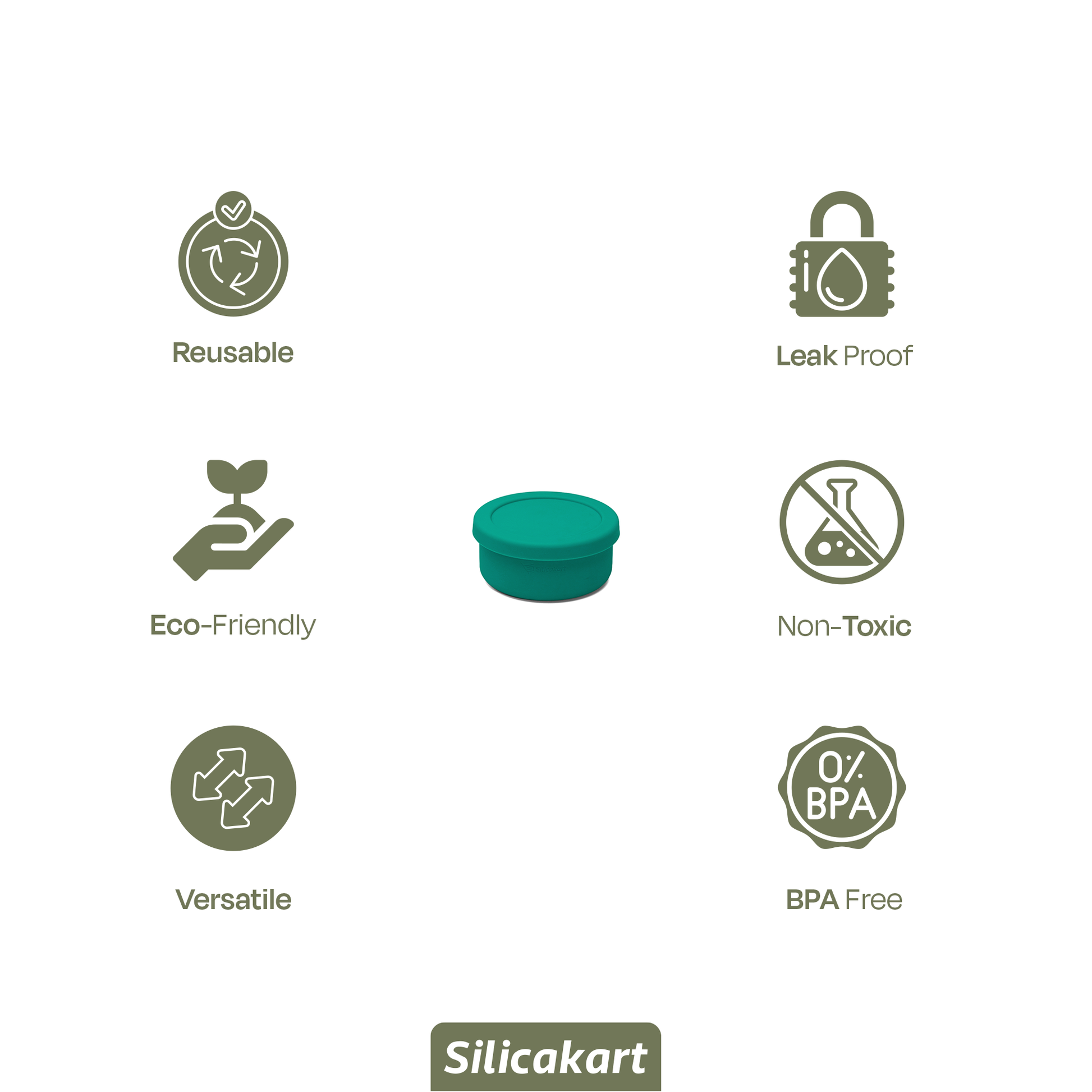 Silicakart Silicone Bento Boxes Small-Green (Round)